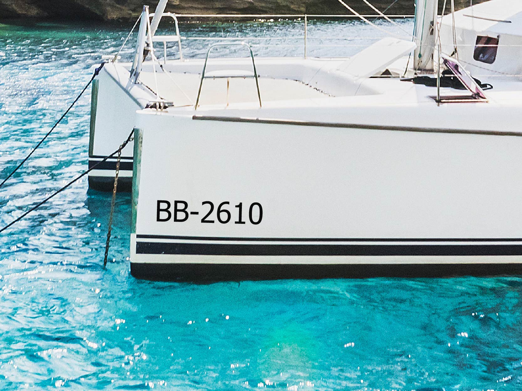 Bootskennzeichen schnell & günstig erstellen. Geliefert wird der Bootsaufkleber auf einem Silikonpapier. Darüber ist eine Übertragungsfolie kaschiert. So gelingt die Montage im Handumdrehen. Übrig bleibt eine freistehende Bootsbeschriftung.