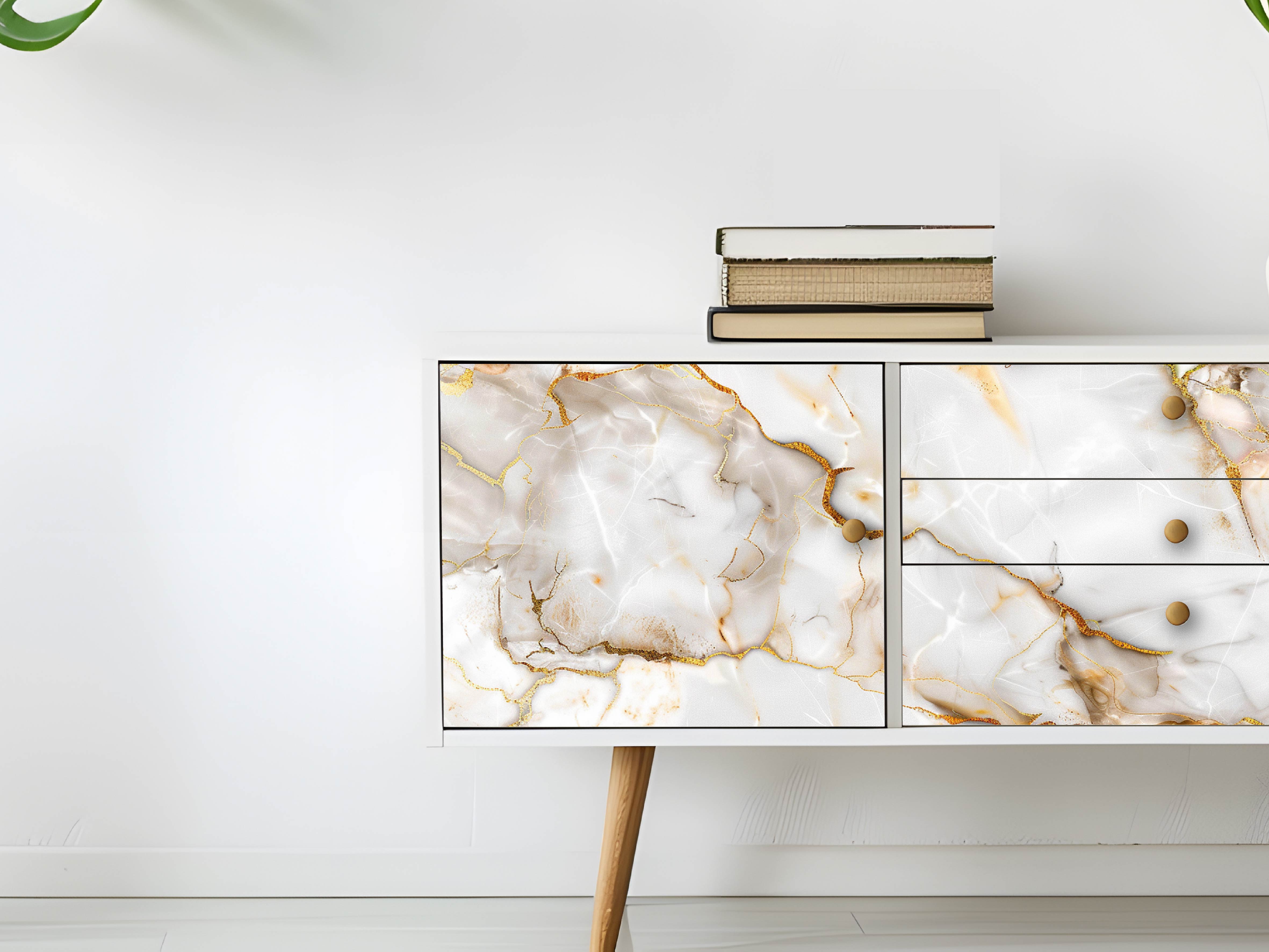 Möbelfolie in weißer Marmoroptik mit goldenen Adern