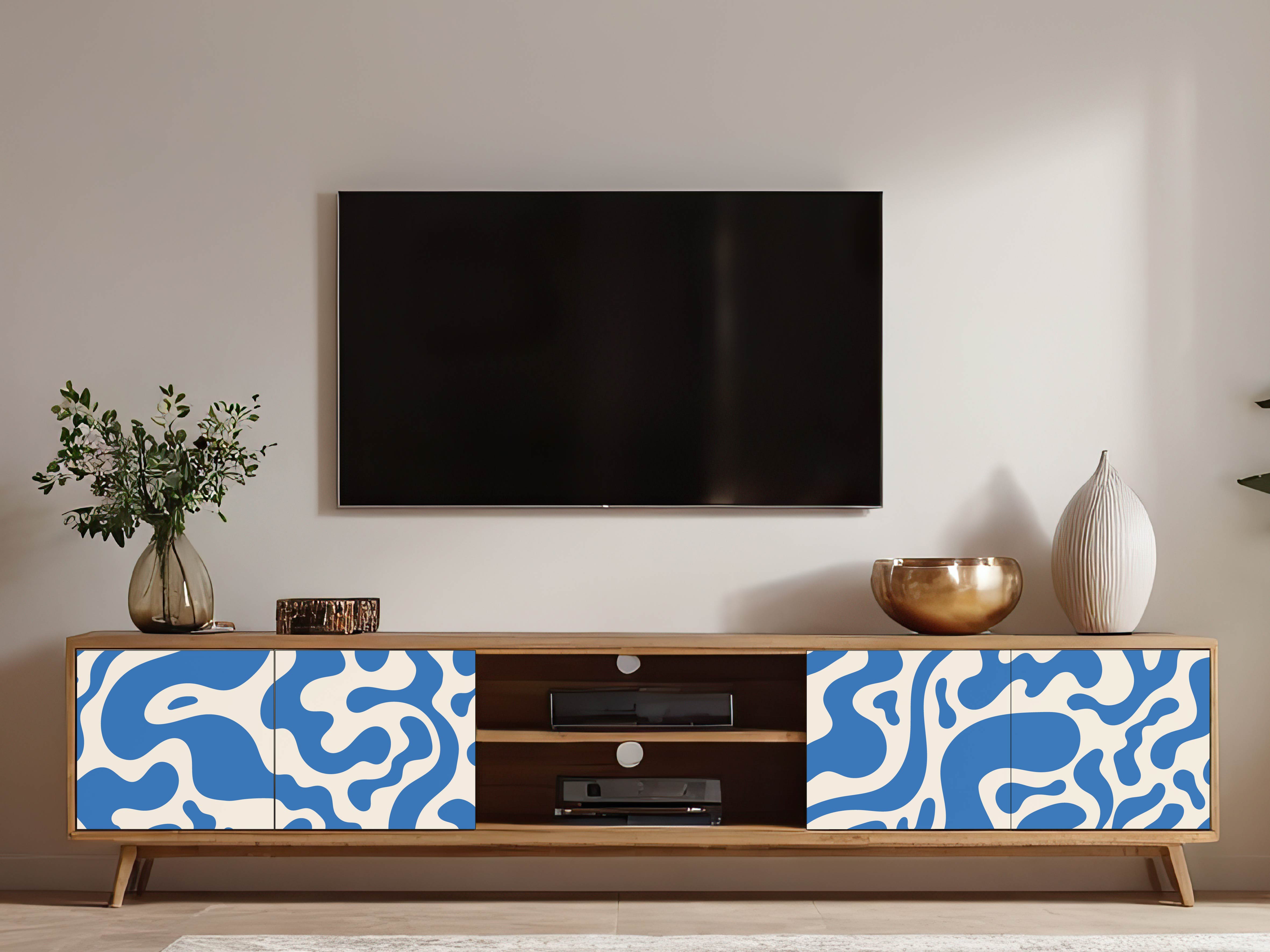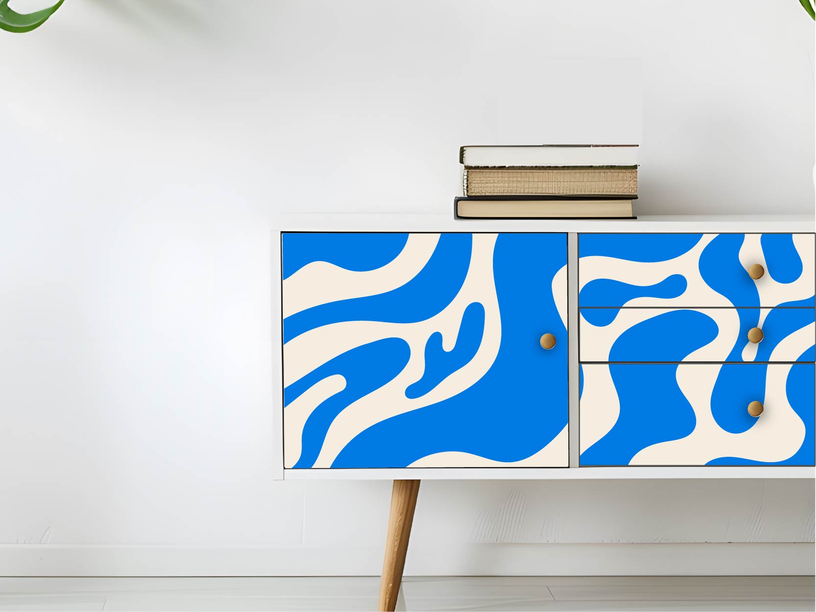 Diese Möbelfolie besticht durch ihr organisches Wellenmuster in harmonischen Blau- und Beigetönen. Sie verleiht Möbeln eine moderne, zugleich natürliche Optik und eignet sich ideal zur stilvollen Auffrischung von Oberflächen. Einfach blasenfrei verkleben!