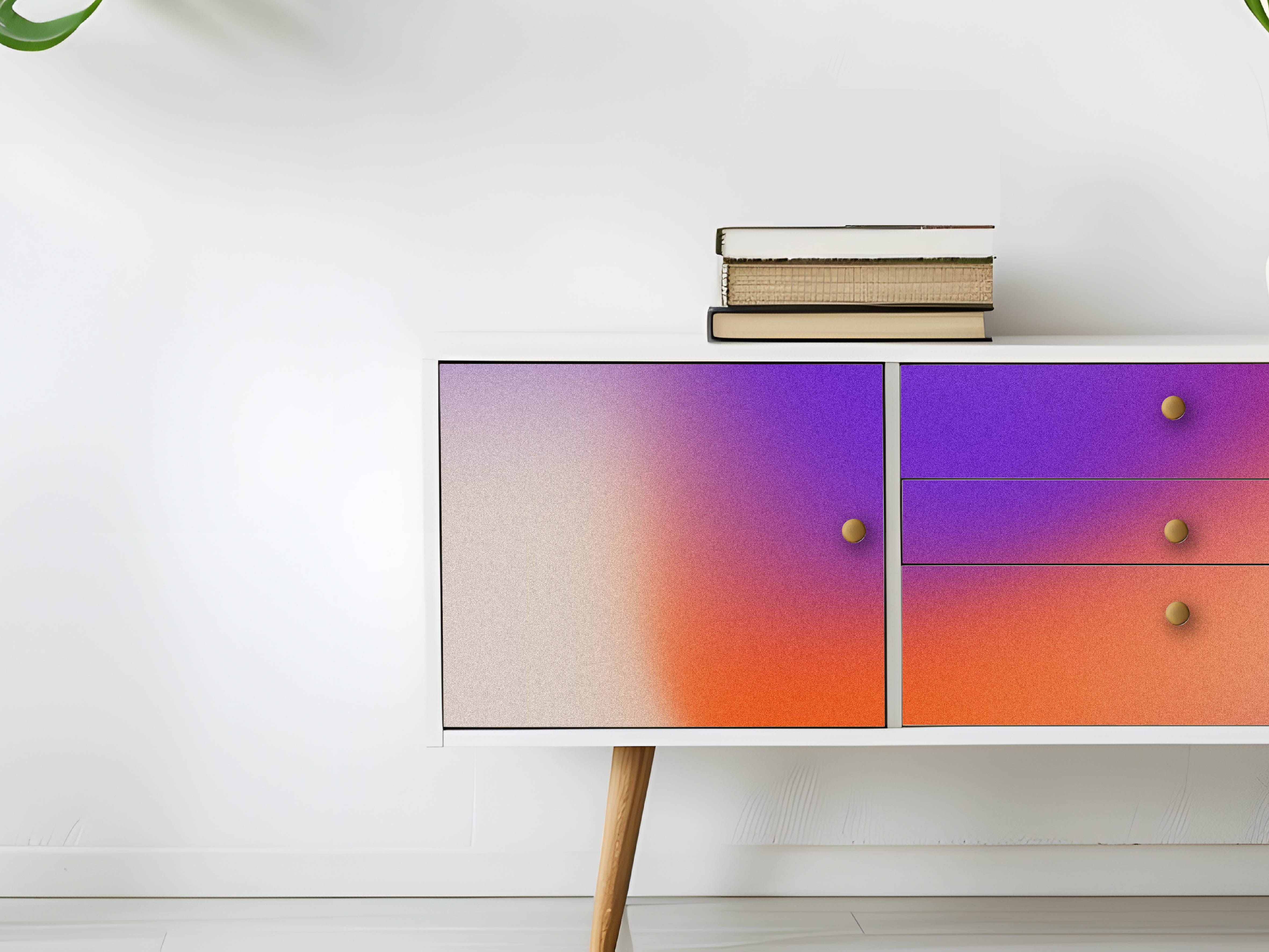 Möbelfolie Lila Rot Weiß Verlauf – sanfter Farbverlauf in modernen Tönen. Verleihe deinen Möbeln mit dieser Klebefolie ein stylishes und elegantes Upgrade. Blasenfreie Anwendung garantiert!