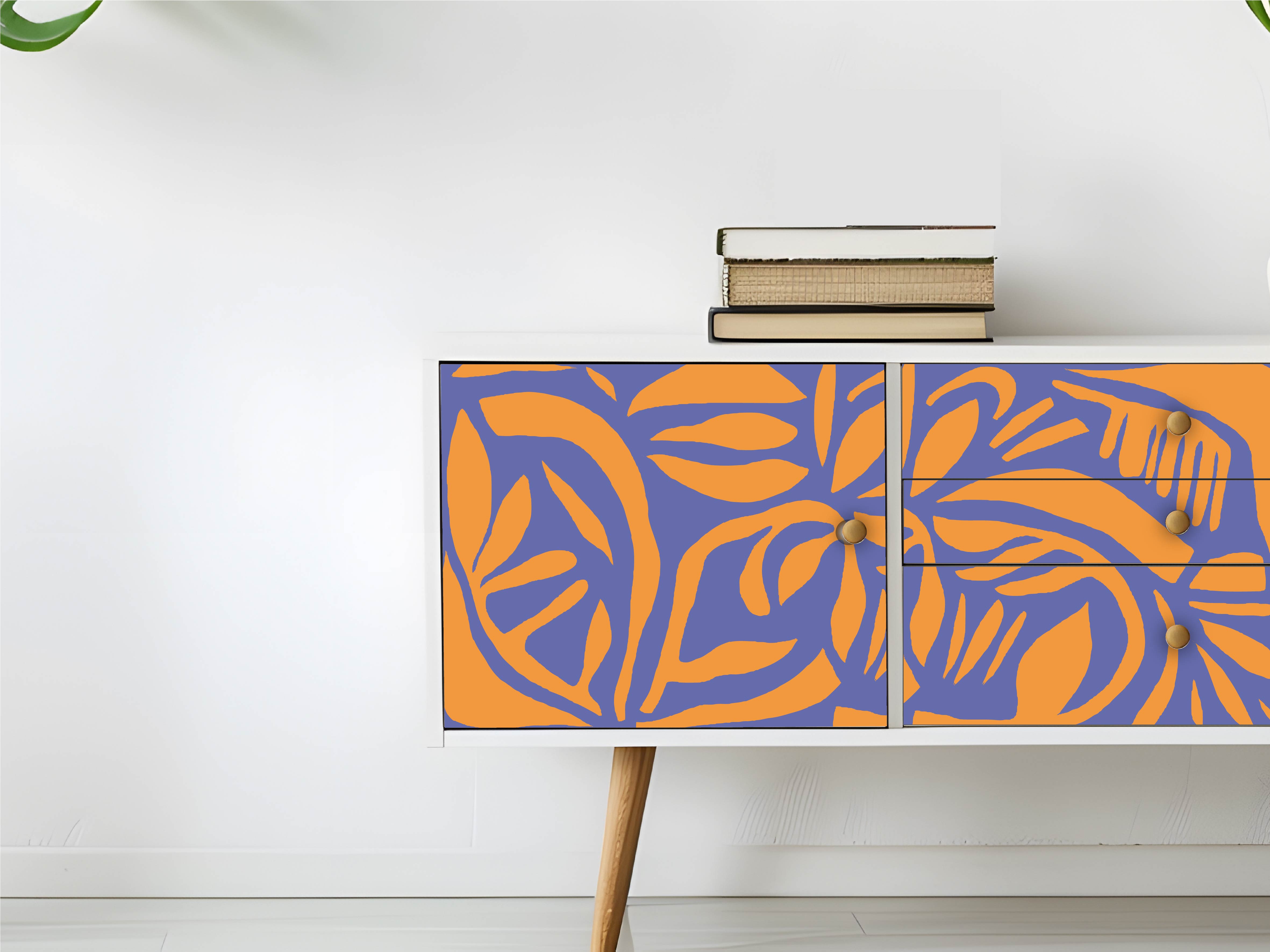 öbelfolie Summer Floral – lebhaftes Design in Lila und Orange mit floralen Mustern. Verleihe deinen Möbeln sommerlichen Charme und frische Optik. Einfach blasenfrei verkleben!