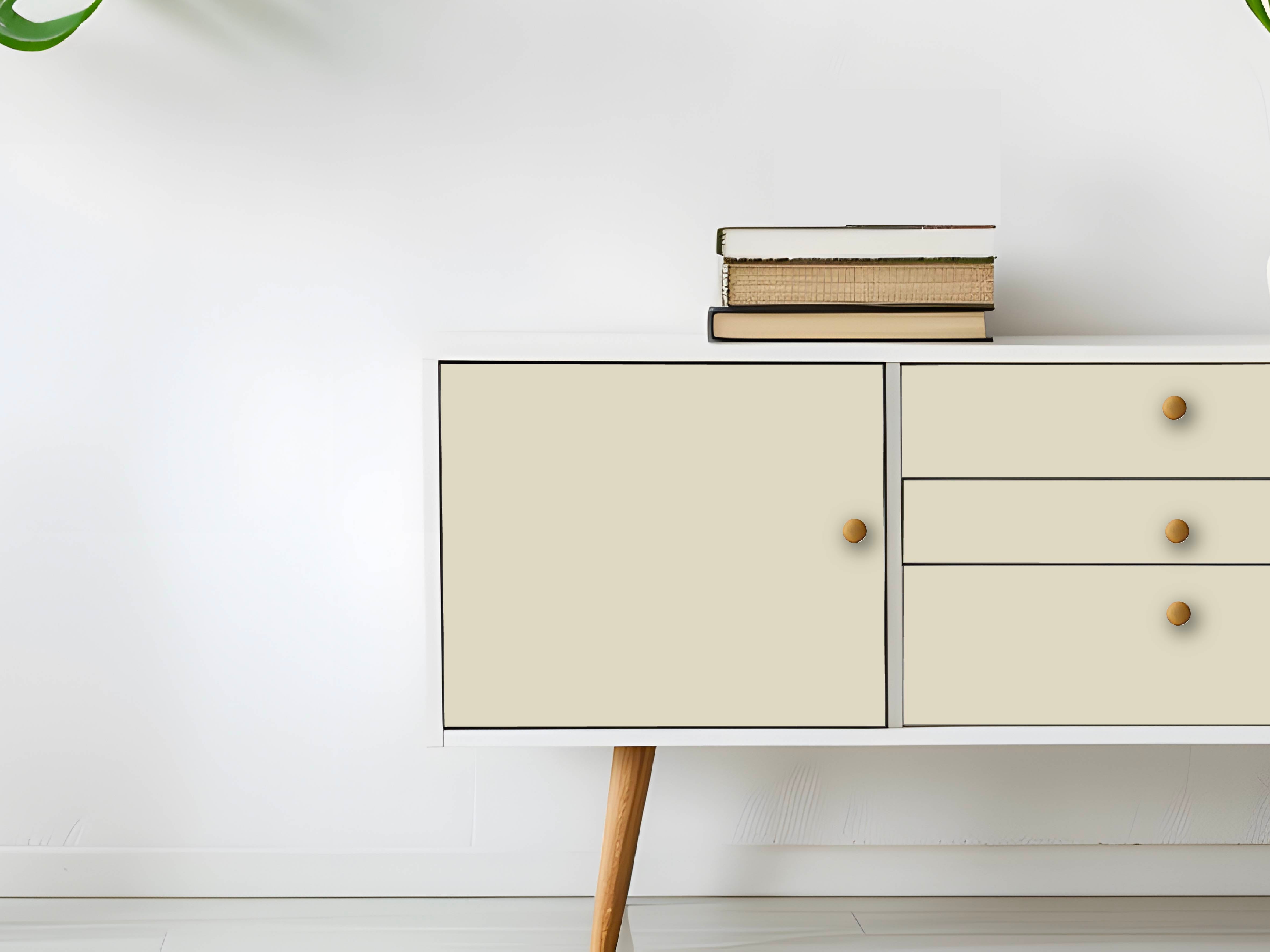 Möbelfolie Vanilla – einfarbige, sanfte Farbe in Vanille-Ton. Perfekt für einen dezenten, eleganten Look. Langlebig, selbstklebend und einfach blasenfrei anzubringen.