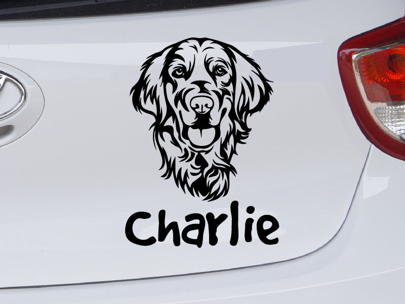 Golden Retriever Aufkleber mit Wunschnamen personalisierbar.