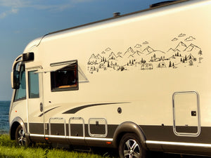 Wohnmobil Aufkleber handgezeichnete Campingplatz Landschaft